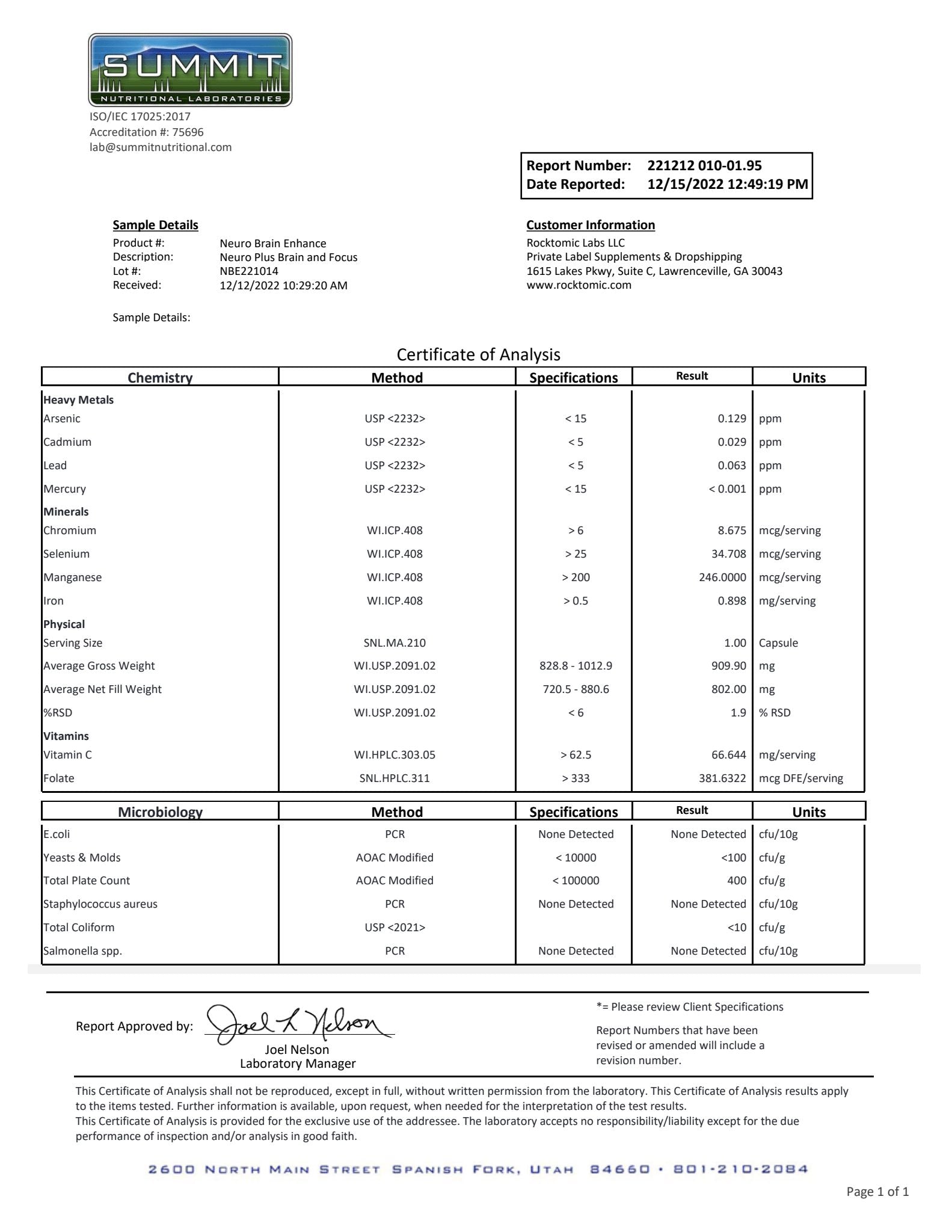 | Neuro Edge – Mind Boost Pluss is formulated to boost cognitive function, mental clarity, focus, immune function, and energy production. Our product is synthesized utilizing the latest scientific research and formulated with high-quality ingredients. Our formula is third-party independently tested for heavy metals, impurities, made in the USA, GMP certified, and produced in an FDA registered facility. 1% of the supplements on the market can match our world-class standards. |